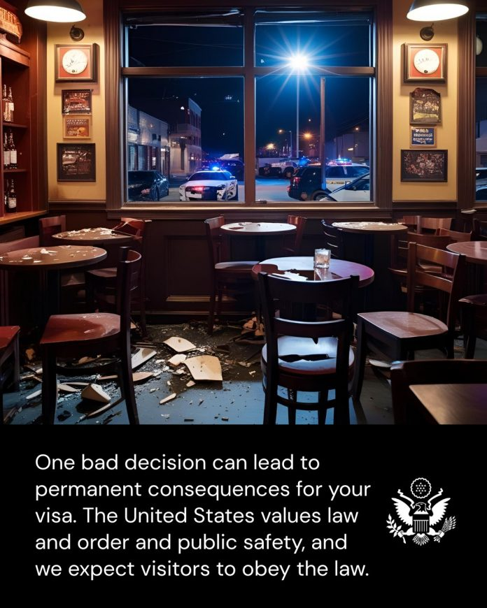 “Një vendim i keq mund të ketë pasoja të përhershme për vizën tuaj. ShBA vlerësojnë ligjin dhe rendin dhe qetësinë publike dhe presim që vizitorët t’i binden ligjeve”, thuhet në postimin e shërbimeve konsullore të DASh.