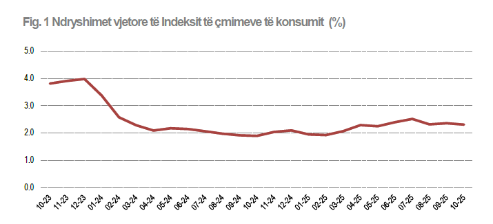 Çmimet e mallrave dhe shërbimeve në tetor janë rritur me 2,3% krahasuar me tetorin e vitit të kaluar. Krahasuar me muajin shtator, çmimet ndryshuan me vetëm 0,1%.