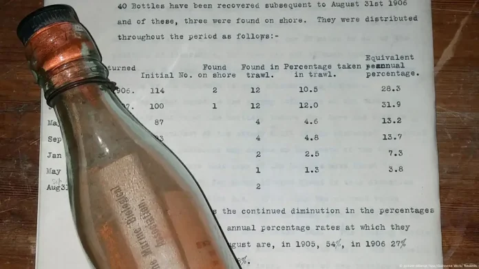 Malte Bayer dhe familja e saj, me origjinë nga Pylli i Zi në Gjermani, gjetën shishen dhe letrën, të zbukuruara me peshq shumëngjyrësh dhe karkaleca deti ndërsa ecnin përgjatë plazhit.