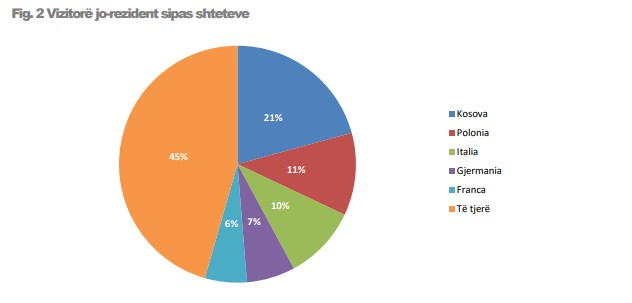 Vizitorët nga Kosova kryesuan gjatë kësaj periudhe me 21 %, të ndjekur nga vizitorët polakë, 11%; italianë, 10%; gjermanë, 7%; francezë 6% dhe nga vendet e tjera 45%.