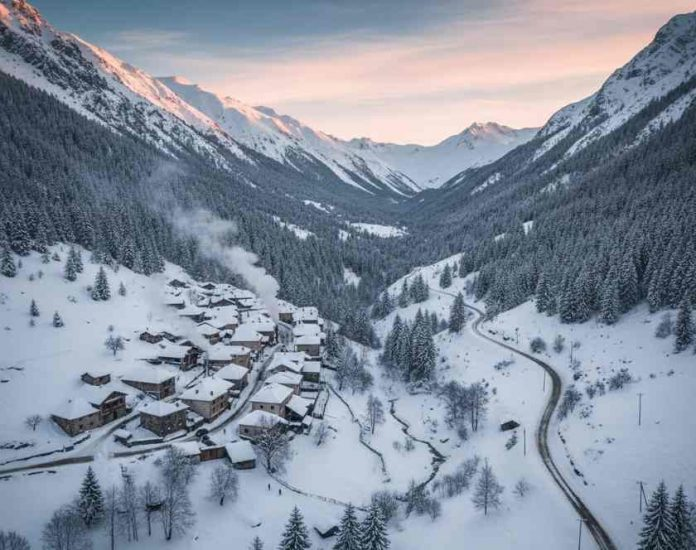 Udhëtimi piktoresk prej 16 kilometrasg që lidh Thethin me Qafën e Thorës, Bogën dhe Shkodrën është më i bukur se kurrë – pasi e gjithë rruga është e mbuluar me borë.